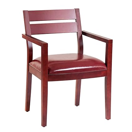 Amazon Com Wood Guest Chair Leather Seat Reception Chairs With Arms